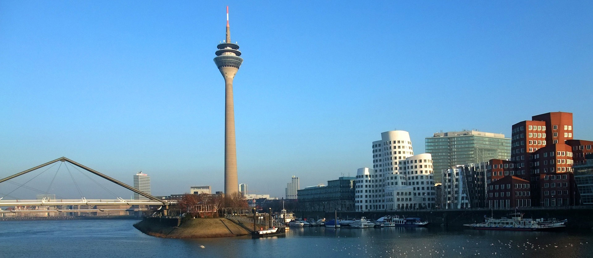 Zunächst werden wir den Rheinturm, der 240 m hoch und eine Aussichtsplattform und ein Restaurant in 172 m Höhe aufweist, besichtigen und können den Rundblick genießen. Der Aufzug gilt selbstverständlich auch für Teilnehmer(innen) mit Rollator. Danach Spaziergang Rheinuferpromenade und Medienhafen.